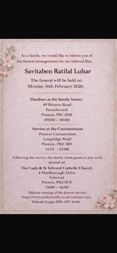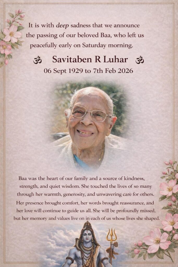 Savitaben R Luhar Posted on 10th February 202612th February 2026 by PINAKIN PANCHAL Posted in In Memory.